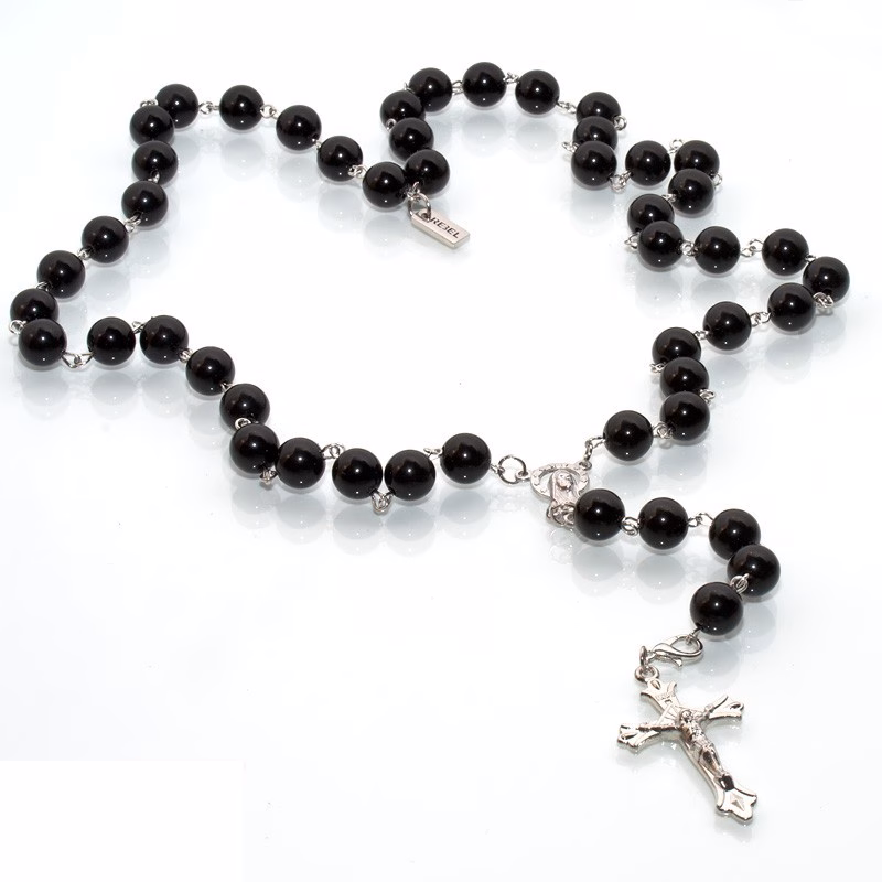 Rimelig sølvbelagt rosenkranskjede Skinnende svarte akrylperler